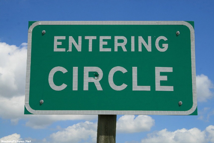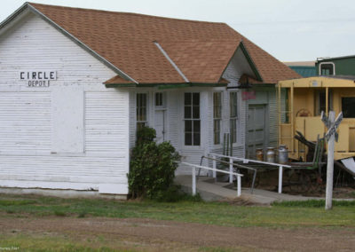 For the first fourteen years we bounced around Montana with no A/C. So imagine rolling into Circle Montana at the end of June. The sign over the McCone County Credit Union reads 90 degrees. In an effort to get a better view of the community and find a cool shady spot for lunch we parked the truck near the water tank on the east side of town.