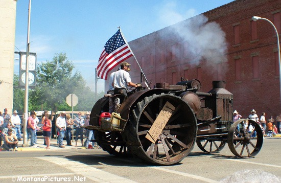 During the 1910s through the 1930s “The Rumley Oil Pull Tractor” could be seen plowing, pulling “binders” during wheat harvest, grading roads, threshing and grinding feed throughout the Sun River Valley. To the right is a picture of a 1927 “Rumley Tractor.”