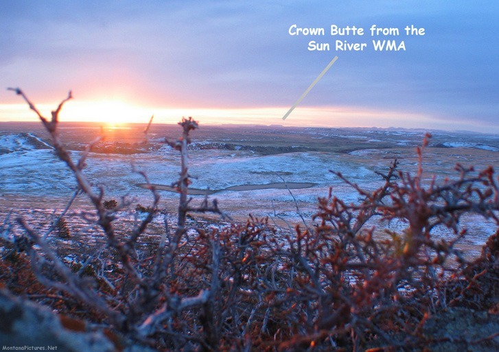 There are some views of Montana that can not be appreciated behind a windshield. For just a little effort there are foot trails that open up Montana vistas you will never forget. The views of the Rocky Mountain Front from the Crown Butte Preserve south if Simms, Montana is an excellent example. An early morning or sunset walk to the summit of  Crown Butte will reveal magnificent views, ancient local history and geology unique to Montana.