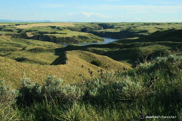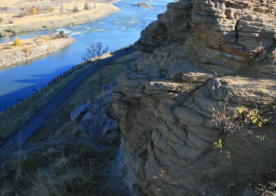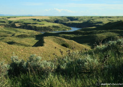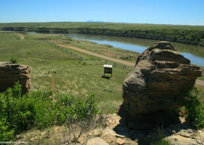 The open landscape reminds us that Great Falls, Montana is part of the western “High Plains.” (Elevation: 1,120 meters) If you are pressed for time, you can get a “feel” of what the “High Plains” is like, by hiking the incredible trail located three miles upstream from the Cochrane Dam. The North Shore Trail has interpretive signs to help you identify prairie landscape and vegetation. We included a gallery of some of the landmarks and plants you will see on the trail.