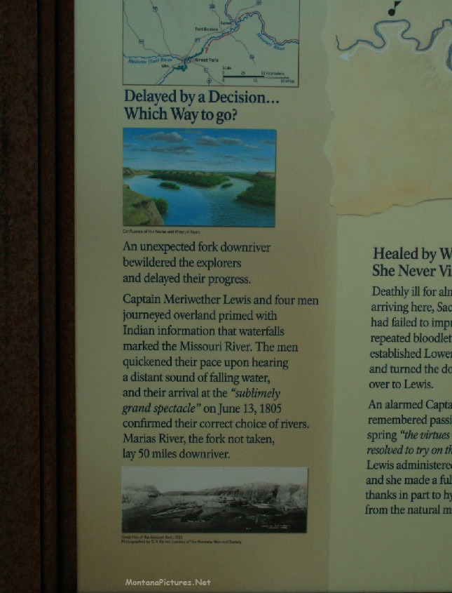 Below “Rainbow Falls” you can find a rare Missouri River sight, “Crooked Falls.” “Crooked Falls” is the only visible falls in the Missouri/Mississippi River system that does not have a dam sitting on top of it. The best way to see “Crooked Falls” is from high above. Click here to visit the “Lewis-Clark.org” website for a view.