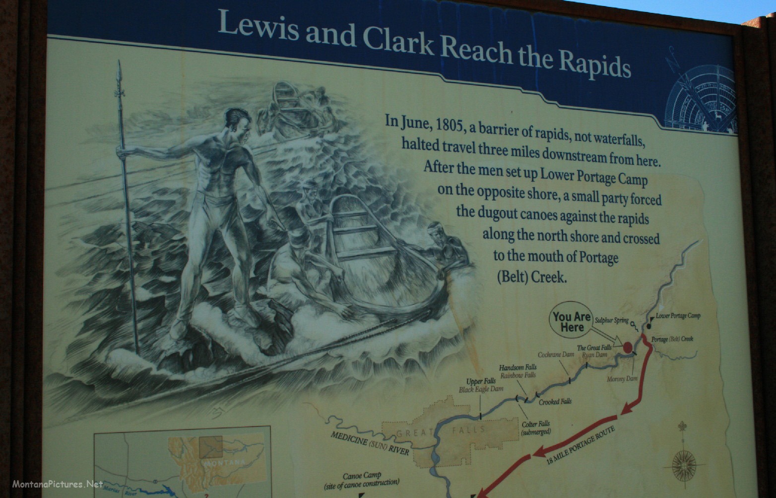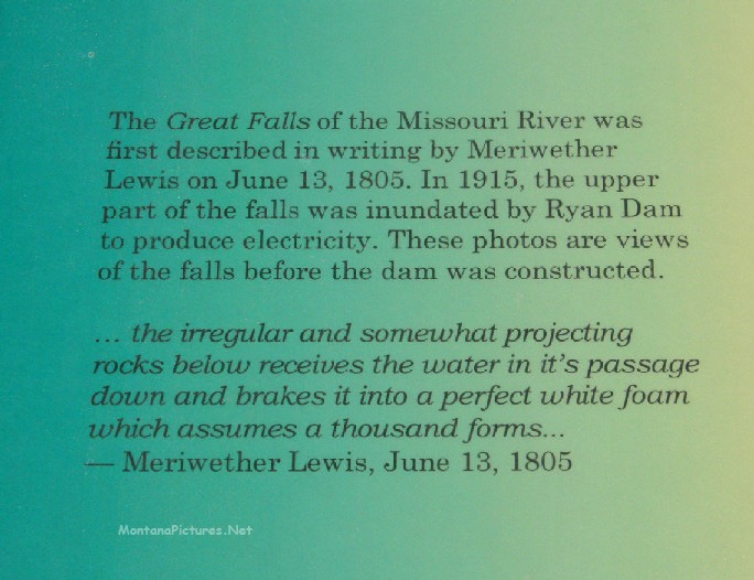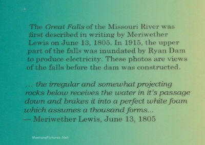 Try to visit the “Great Falls of the Missouri” during the “Spring Run-Off.” The volume of water crashing down in to the Missouri River is humbling. Just downstream of the Great Falls is an island full of wonderful recreation facilities and valuable information about the “Great Falls of the Missouri.”