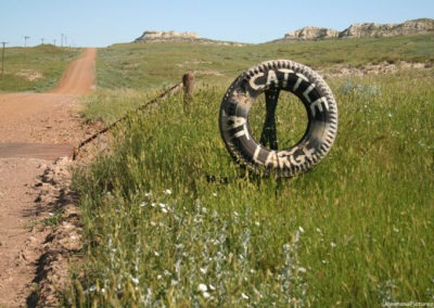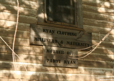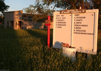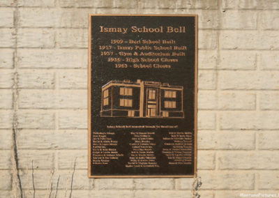 Ismay is unique because you can get an idea of Ismay, Montana’s history just by walking around town. The community has carefully placed signs marking what business or residence occupied each lot along the block. We accidentally deleted the pictures of all the signs shot during our first visit but was able to photograph a couple of the wooden signs in the golden light of a June sunset on our third visit.