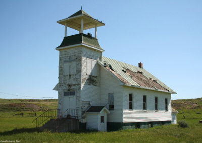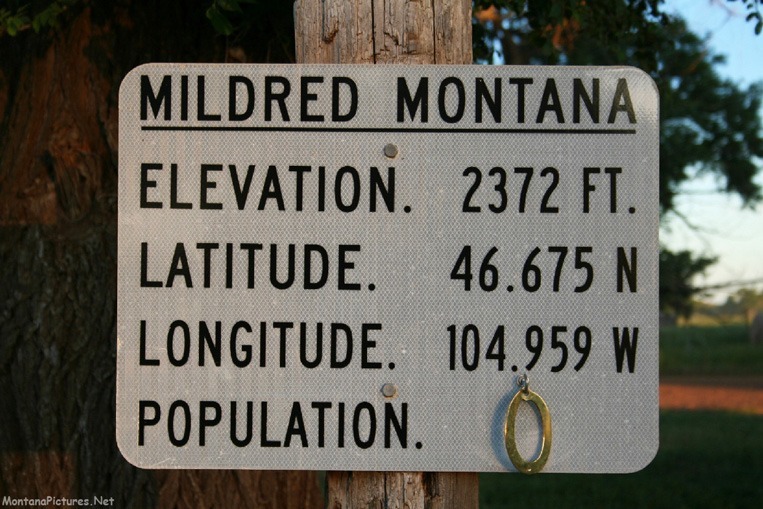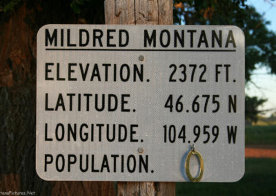 The Milwaukee Railroad town of Mildred is on O’Fallon Creek 20 miles southeast of Terry, Montana. The station was named for a daughter of a Milwaukee Railroad official. Mildred was a thriving little town on the Old Yellowstone Trail with many tourists traveling through. The town hall was the scene of wrestling matches, basketball games, spelling bees, and dances. A cyclone carried away most of the building but left the piano unharmed and sheet music still in place on it. Children from the Lacomb and Whitney areas came to school by train each day. When the highway was changed, the town lost population. During the drought years, the country folk left and business places had to close. (from Cheney’s Names on the Face of Montana, Mountain Press Publishing Company)