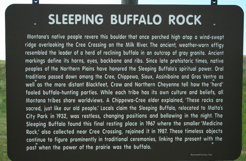 The area around Malta, Montana offers a wonderful break after traveling across the vast “Big Sky Country” during a toasty Summer day. The shaded Trafton Park Campground on the west side of Malta is one of the best on the “Hi-Line.” Be sure to look for the ancient encampment on the west side of Bowdoin Lake, then marvel at the magnificent Sleeping Buffalo Rock (pictured below) found east of Malta. If the summer heat is too much, pay a visit to Nelson Reservoir to cool off.