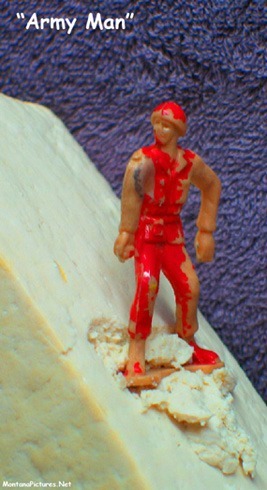 In a pinch, the “Army Man” position can be used to safely get down a “black diamond” ski run. Of course, “Army Man” is no fool, he is wearing a helmet and so should you.