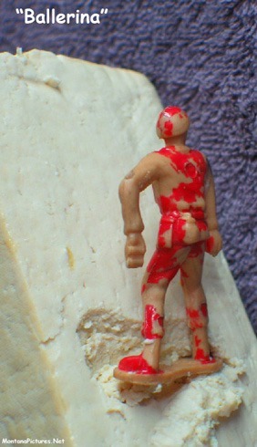 When we first started snowboarding we loved the “Ballerina” position. If we had to fall or stop, it seemed like we only had to drop a short distance to our knees. Dropping on your rear end out of the “Army Man” position means landing on what ever is below you,sight unseen. When the snow is scarce, that could mean a rock or tree root.