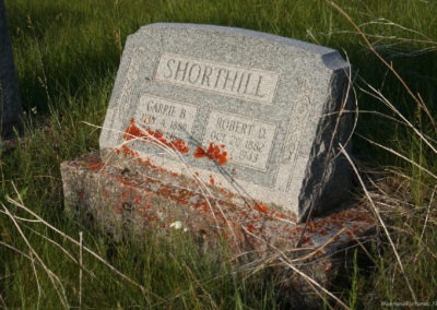 As you enter the Shorthill Cemetery walk down hill to the first level of headstones. This is where you will find the graves of the early “Paradise Valley” Homesteaders.