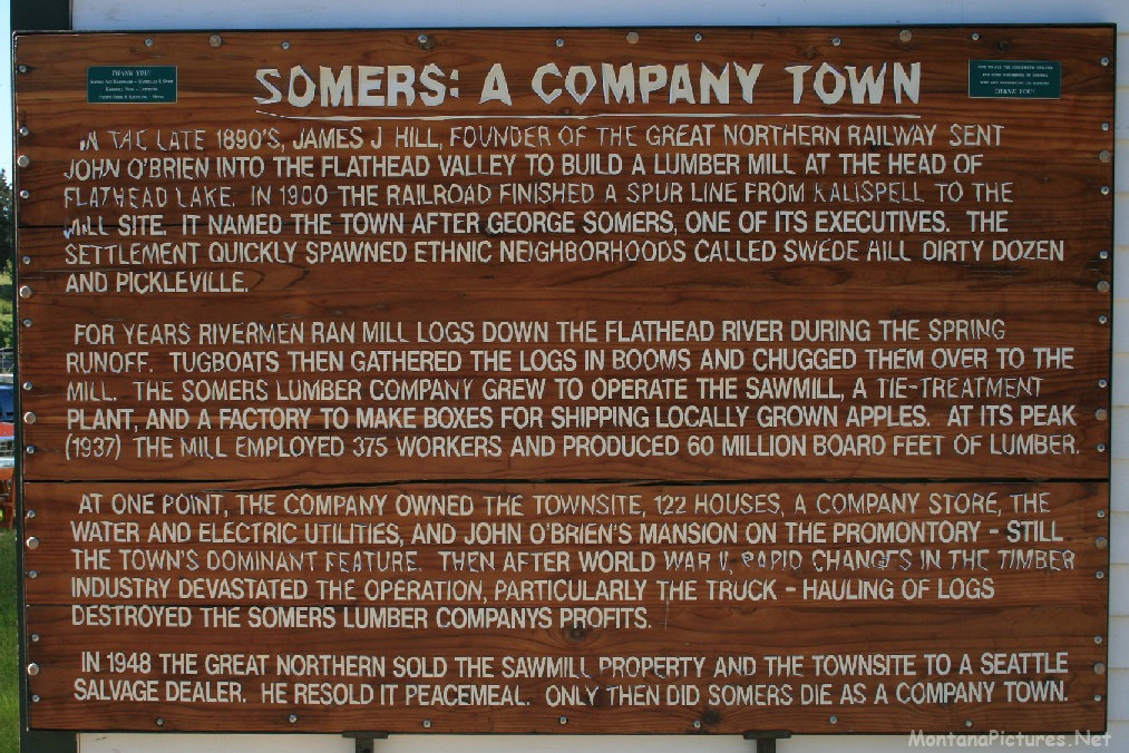 Located at the head of Flathead Lake this former Lumber town is always a treat to visit. The Great Northern Railroad built a spur line from Kalispell to the sawmill in Somers, Montana in 1900. At one point, the Somers Lumber Company owned the townsite, 122 houses, a company store, the water and electric utilities and the O’Brian mansion. In 1948, the Great Northern sold the sawmill and townsite to a Seattle salvage dealer.
